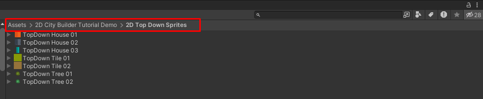 * Inside your **2D City Builder Tutorial Demo** folder, create a new folder and name it **2D Top Down Sprites**.